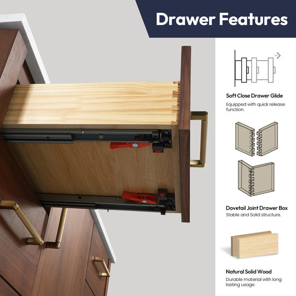 There were no instructions on installation or maintenance. The shelf under the sink is is the way of a p-trap and need special attention. The quality of the vanity materials is good.