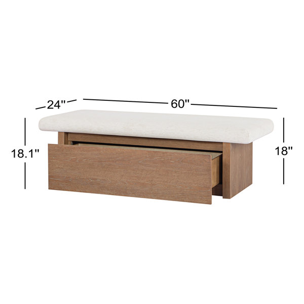 The Gemma storage bench marries contemporary elegance with versatile, functional design. Its generous, deep-seated top is wrapped in a soft, muted chenille, that effortlessly transitions the bench from entryway statement to sophisticated coffee table or seating at the foot of a bed. The recessed wooden base invites functional repose as a sleek wire-brushed drawer offers ample storage.