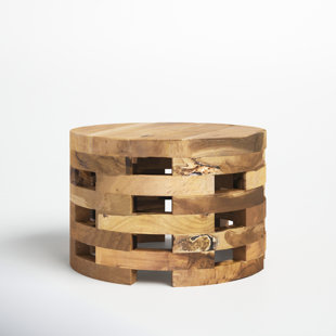 This solid wood drum coffee table is one of our favorites for infusing a living room with organic vibes. It's made from pieces of renewable teak wood that have been stacked and positioned in a circle to create rectangular openings. The natural finish showcases the wood grain that varies for each piece, making each table unique. At 24" in diameter, this accent table makes a statement in front of your sofa or next to a bed as a nightstand.
