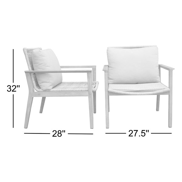 These chairs are very comfortable but they came with the wrong screws and the rope is not finished well as it wraps around the metal. Also the lable for the brand is on the front of one of the chaurs and the back of the other.