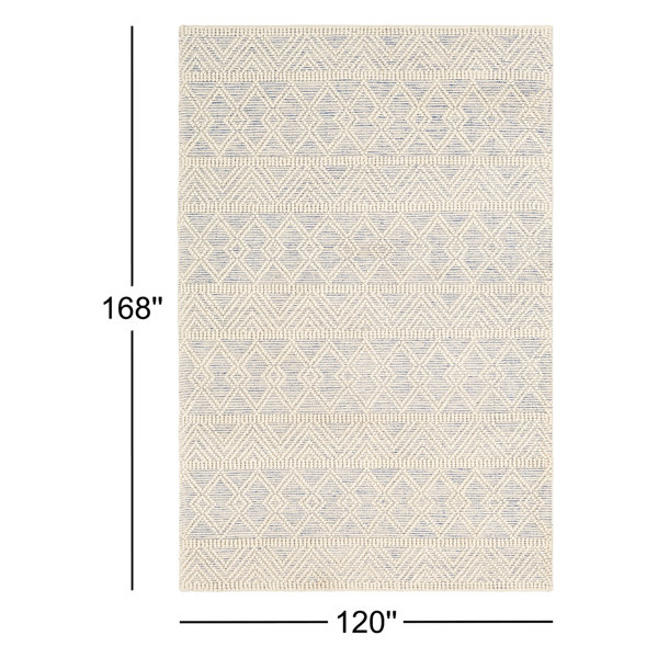 This rug is lovely in our room! The blue is muted but more noticeable than the online pictures show so it’s a nice neutral but not boring. It laid flat right away but did have a bit of a smell that’s airing out like other reviewers mentioned. The texture is nice and makes it more interesting too.