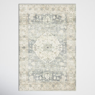 With a classic old-world design and intentional distressing, this gray and denim-hued area rug looks instantly like a well-worn heirloom even though it arrives brand new. Machine-made from polyester using a power loom, this area rug has a printed design that provides the textured effect of a high-end rug at an affordable price point. This area rug comes backed by canvas to help keep it in place, but we also recommend adding a rug pad to help keep it from shifting or sliding. Plus, it comes in a variety of size options, so you can easily add it almost anywhere.