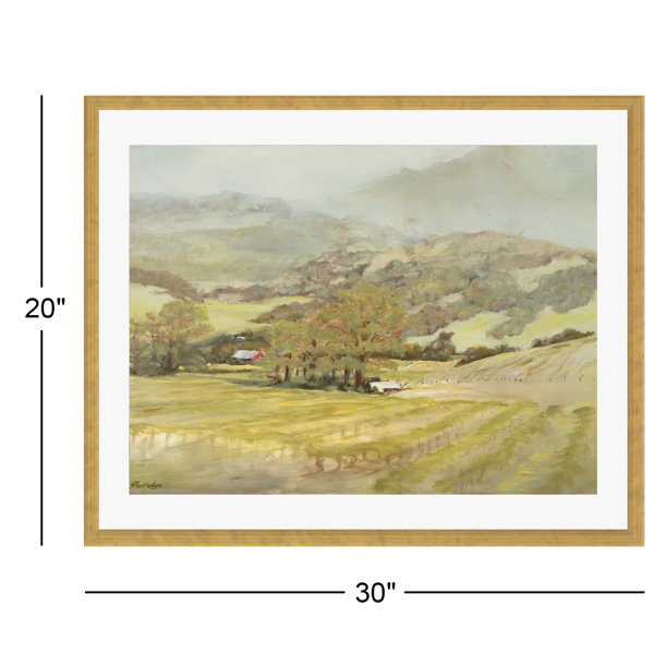 A reproduction of work by painter Silvia Rutledge, this print depicts a bucolic vineyard scene nestled into a lightly wooded countryside of gently rolling hills. With its traditional style and classic landscape subject, this piece reminds us of a lucky art fair find. Printed on paper using fade-resistant inks, it arrives in a wooden frame with an archival acrylic cover to protect it from fading and warping. Plus, included hardware makes it easy to hang this print right out of the box.
