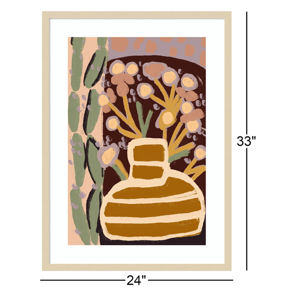 Art description: This abstract artwork depicts a vibrant array of floral elements. The graphic representation of flowers creates a botanical and early impression, showcasing the artist\'s skill in abstraction. This framed art print was created by Treechild and printed in Madison, WI. The print is giclee printed using fade-resistant inks for picture-perfect detail and incredible depth of color and finished with a 100% real wood frame. Individually made using traditional custom framing techniques, it has the quality you would expect from your local frame shop.
